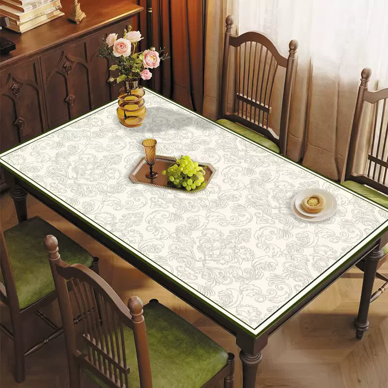 白を基調とした上品な花柄が特徴的なテーブルマットです。