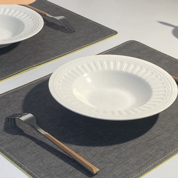 上質な合皮素材を使用したリネン調の質感が美しいランチョンマットです。 両面仕様で気分や食卓の雰囲気に合わせて使い分けられる便利な設計になっています。 撥水性に優れ汚れもさっと拭き取れるため、日常使いから来客時まで幅広く活躍します。 縁取りのステッチが高級感を演出し、食卓を上品に彩ります。 耐久性が高くお手入れも簡単なので、長くご愛用いただけます。
