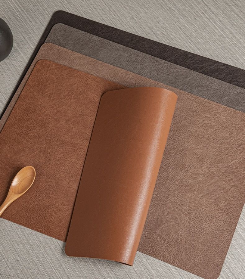 本革のような質感が魅力の合皮を使用したランチョンマットです。 表面は自然な革の風合いを再現しており、高級感のある食卓を演出します。 撥水性に優れているため汚れもさっと拭き取れてお手入れが簡単です。 角を丸くした優しいデザインで、和洋問わず幅広いテーブルコーディネートに調和します。 耐久性があり長くご愛用いただけるランチョンマットです。