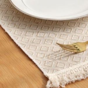 北欧の温かみある食卓を演出するランチョンマットです。 細やかな織り模様が上品で、四方に施されたフリンジが柔らかな印象を与えます。 天然素材の風合いが食器を引き立て、日常使いから来客時まで幅広く活躍します。 シンプルながらも存在感があり、食卓に自然な優しさをもたらします。 洗練されたデザインで、毎日の食事時間を心地よく彩ります。