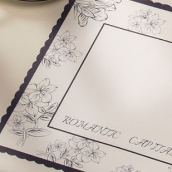 繊細な花の線画が縁を彩る上品な紙のランチョンマットです。 波型の縁取りが優しい印象を与え、中央の余白には文字が添えられた洗練されたデザインとなっています。 紙素材なので使い捨てができ、来客時のおもてなしやパーティーシーンにも最適です。 食卓を華やかに演出するランチョンマットで、日常の食事をワンランク上の時間に変えてくれます。 軽量で収納も場所を取らず、必要な時にさっと取り出して使える便利なアイテムです。