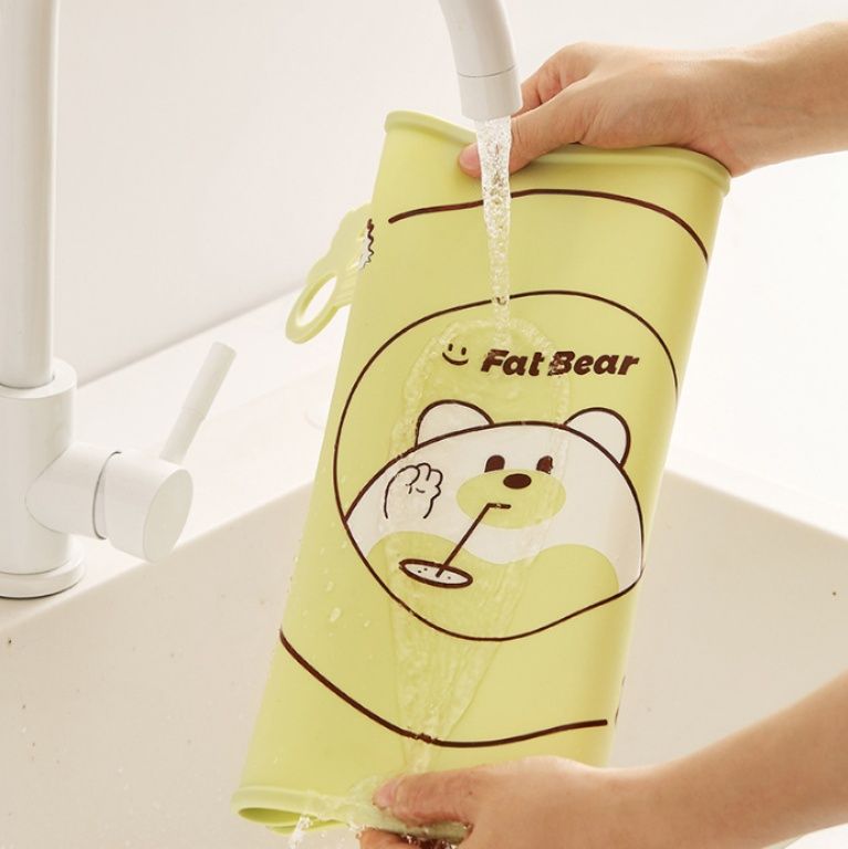 防水防油仕様のシリコン素材で汚れてもサッと拭き取れてお手入れ簡単。