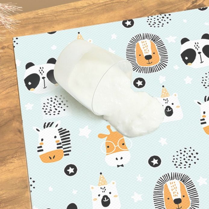 大判サイズで汁物や食べこぼしをしっかりキャッチし、お子様の食事時間を清潔で快適に保ちます。