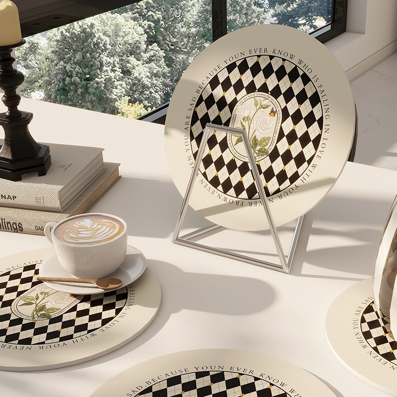 高級感あふれる合皮素材を使用した丸型ランチョンマット。